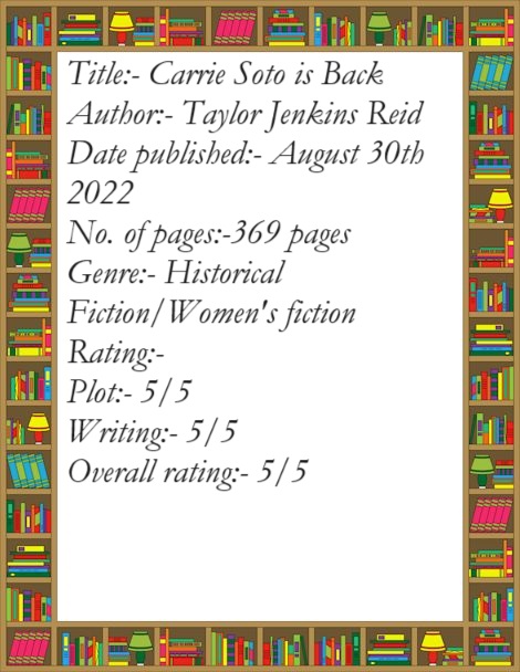 In spite of it all: Carrie Soto is back, for one epic final season. In this riveting and unforgettable novel, Taylor Jenkins Reid tells a story about the cost of greatness and a legendary athlete attempting a comeback.